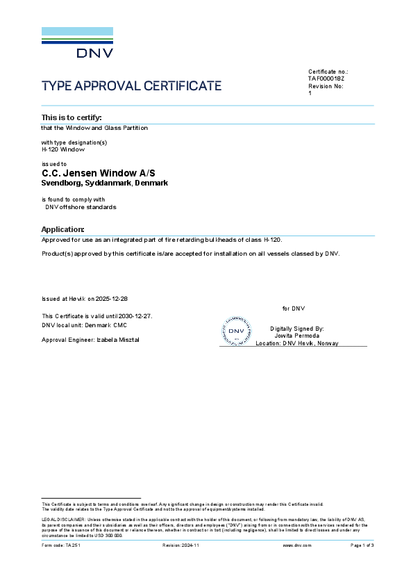 Certificate of approval - A-60 Window Fixed 3-Parted Alu Clamp On A-60 Window